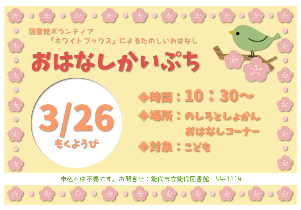3月のおはなし会のおしらせ