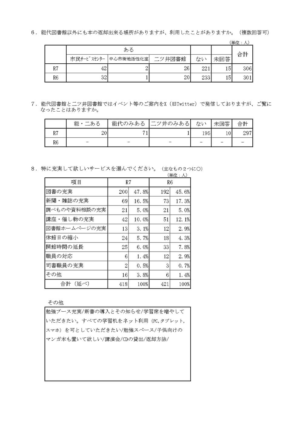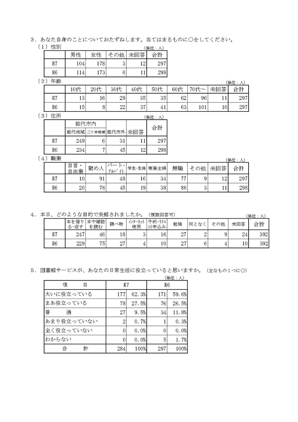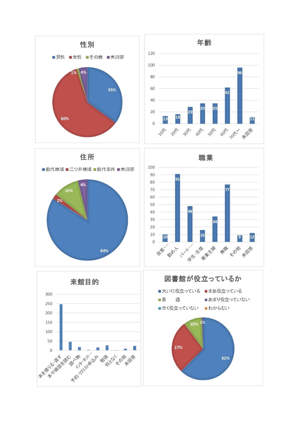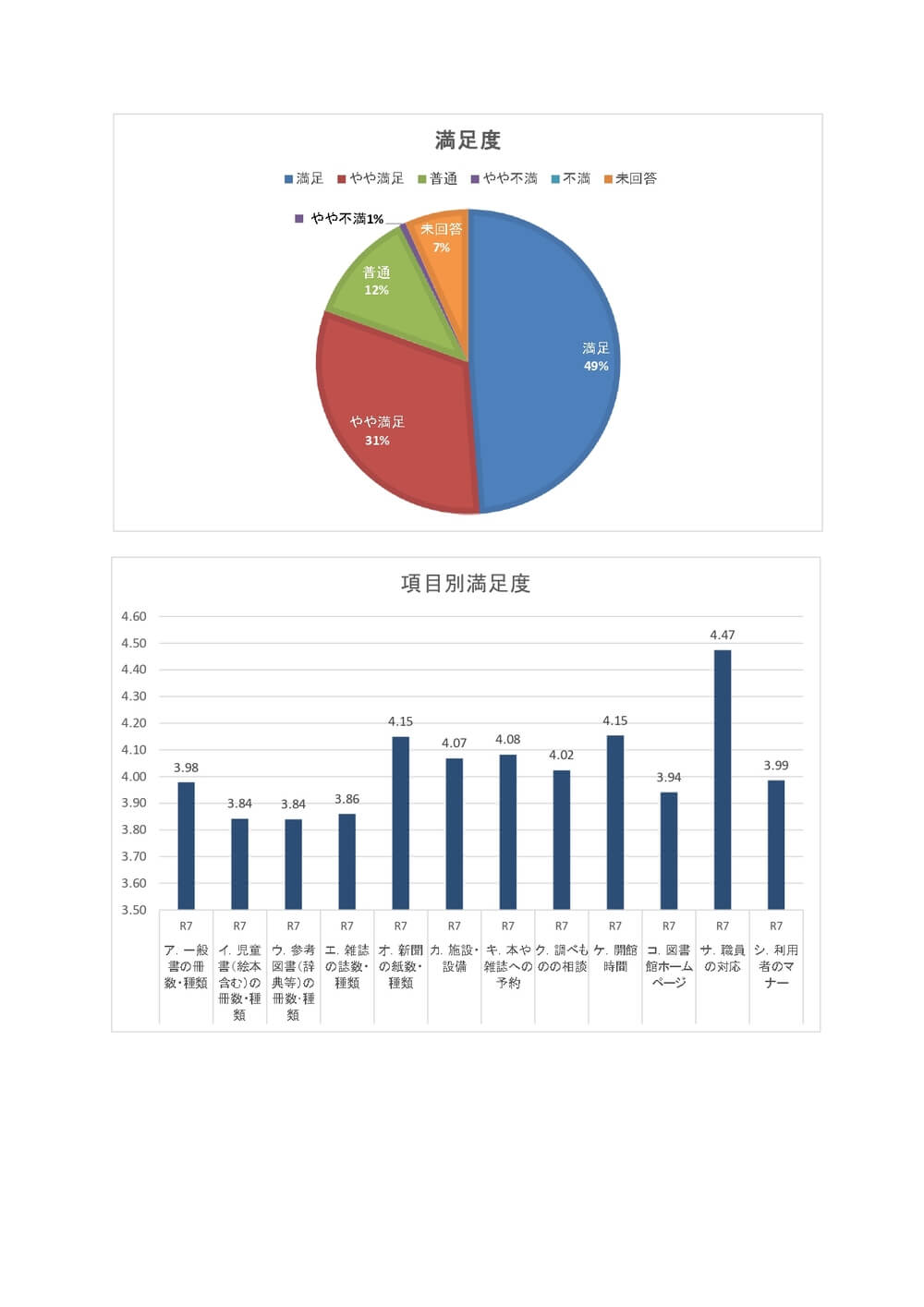 お知らせ 令和7年度 能代市立図書館利用者満足度調査(調査結果) 調査対象 能代図書館利用者300人 ※回収297枚(回収率99%) 調査方法 来館者無作為抽出 調査月日 令和7年 10月4日(土)、5日(日)、7日(火) ダウンロードはこちら