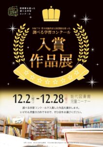 今回入賞した作品を児童コーナーで展示します。